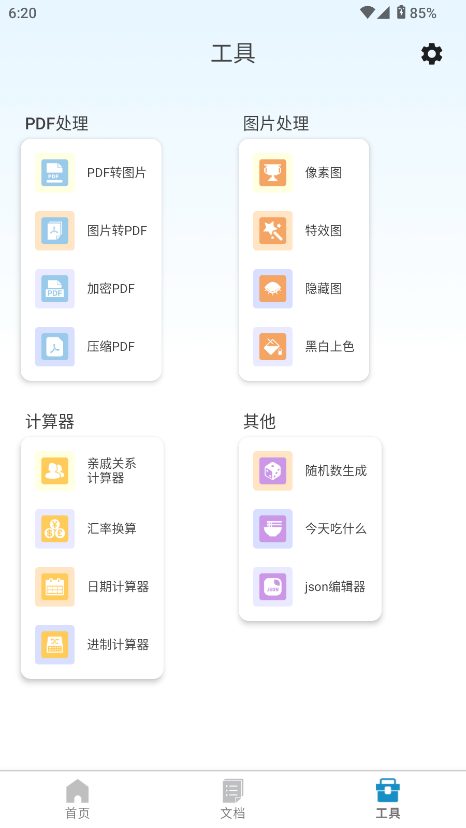1、多类实用工具集成:工具板块涵盖 PDF处理、图片处理、计算器及图片特效制作等功能,既能满足办公场景的文件处理需求,也可用于日常娱乐创作,兼顾实用性与趣味性。