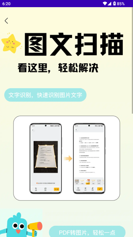 1、多功能集成:集文档扫描、文字提取、二维码扫描、图片转PDF或Word等多种功能于一体。