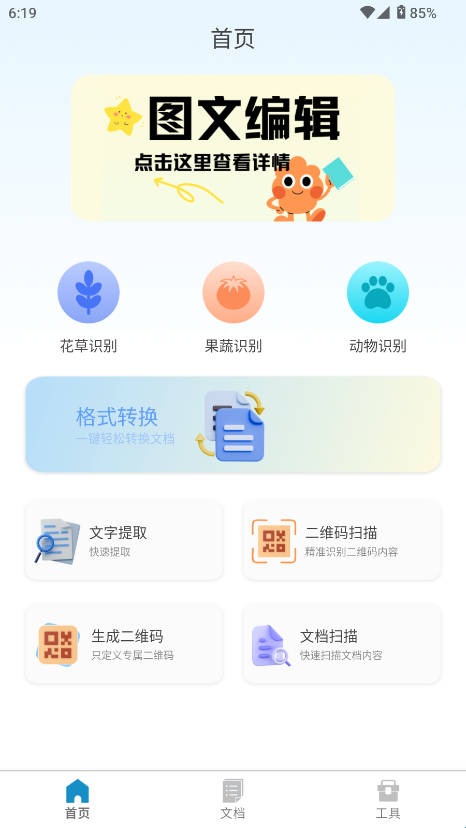 5、生活识别工具:内置花草果蔬和动物物种识别功能,为日常生活增添实用知识与乐趣。