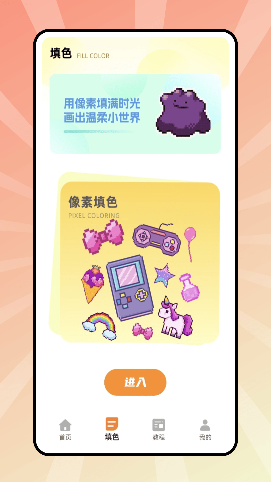 1、填色乐趣无限:踏入“填色”板块,像素填色带来复古又治愈的创作体验。