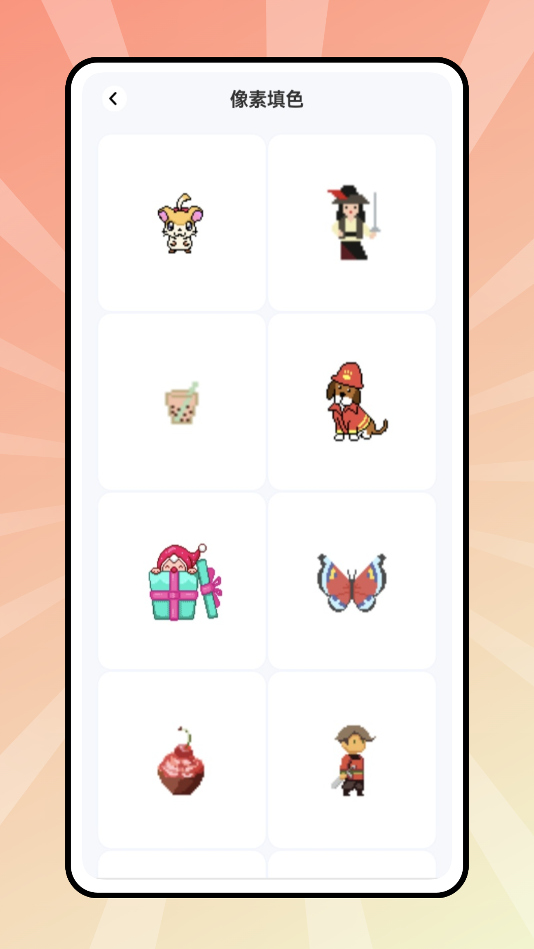 1、可爱萌宠、趣味人物、日常小物等丰富图案库,从简约到复杂,适配不同创作水平。像像素风的小仓鼠、消防员小狗,等待你用色彩赋予独特生命力,轻松填补闲暇时光,画出专属温柔小世界。