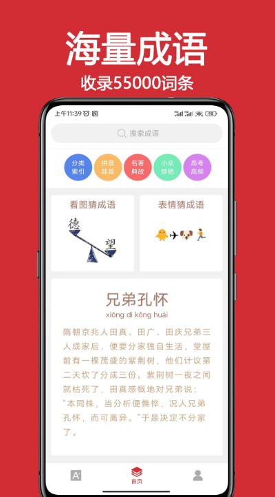 2.每日自动推荐成语,每天接触一个新成语,实现成语积累;