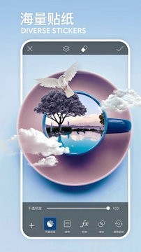 1.拥有丰富的滤镜,独特的拼图素材,精美贴纸,全部免费下载使用。