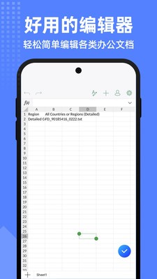 您可以将手机里的word、excel、ppt和pdf等文档导入到文档表格编辑,文档表格编辑强大的文件管理功能,让您轻松的管理各种文件、表格和笔记。