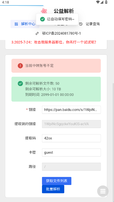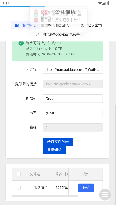 2、链接解析与管理:用户只需粘贴网盘分享链接及提取码即可自动解析,并支持批量处理多个文件链接以提高效率。