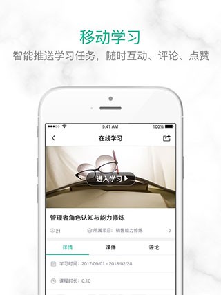 2、一站式开启移动学习平台——企业无需部署安装,按需开通账号,上传视频、PDF、Word、PPT等资料即可开展在学习,“企业学习+互联网”就是这么简单