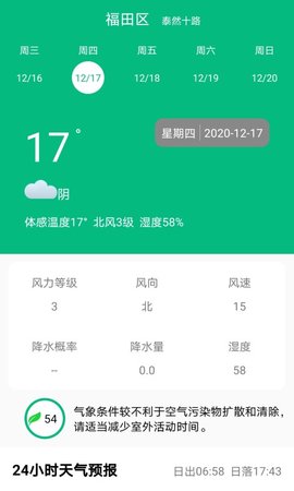 2、未来24小时天气预报、15日天气预报等保障您的生活;