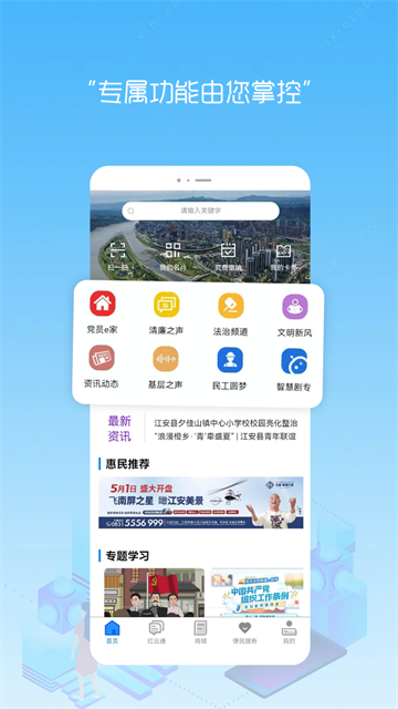 江安红云是专门为广大党员设计的党建服务办公软件,能够为用户提供各类专业的党员学习功能和各种党建资讯信息,超多实用学习资料在这里都可以找到,软件内有详细使用教程,不仅可以直接线上缴纳党费,还可以随时查看最新党员会议信息和最新党建内容,各类便民生活功能也都可以支持,如挂号,出行,线上农资购物等,办理流程公开透明,用户可以放心使用。