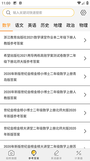 帮搜作业APP一款拍照搜题APP,软件中的所有功能都是免费的,汇聚了多个学科的教辅答案,还支持拍照搜题功能,覆盖小学,初中,高中所有学科的教辅答案,并且提供了计算器,英语翻译等功能,非常方便。