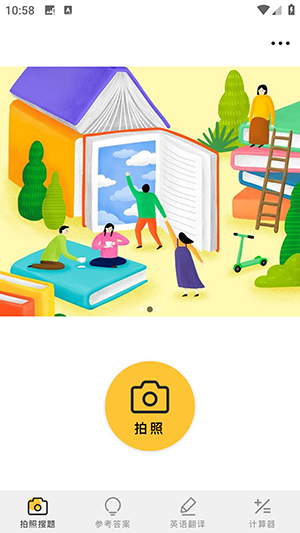 1、进入软件后,在软件首页就会拍照搜题功能。