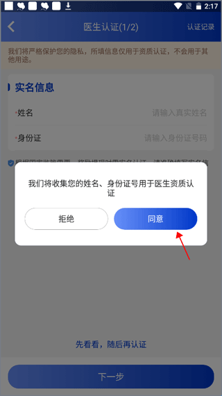 2、这时候会弹出一个提示“要收集姓名、身份证号……”,选择同意按钮。