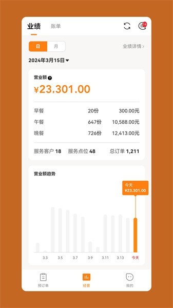 1、营业统计:支持查看门店营业状况。