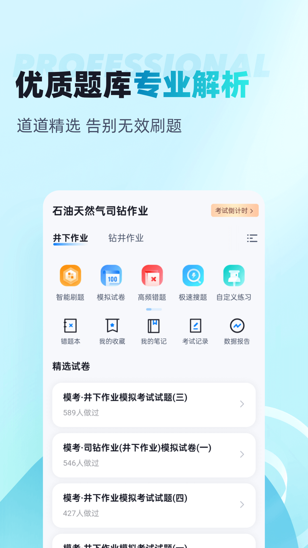 1、丰富的题目资源:该软件包含了大量的理论知识和实际操作技巧的题目,可以帮助用户全面了解石油天然气司钻作业的知识和技能。