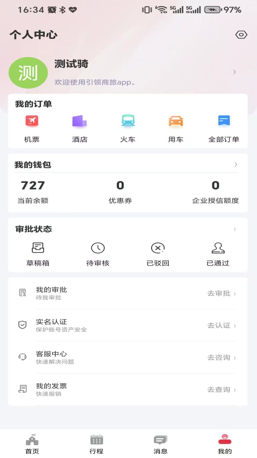 5、账户管理:可轻松管理自己的账户,知道账户钱包数据,了解订单状态,方便用户差旅。
