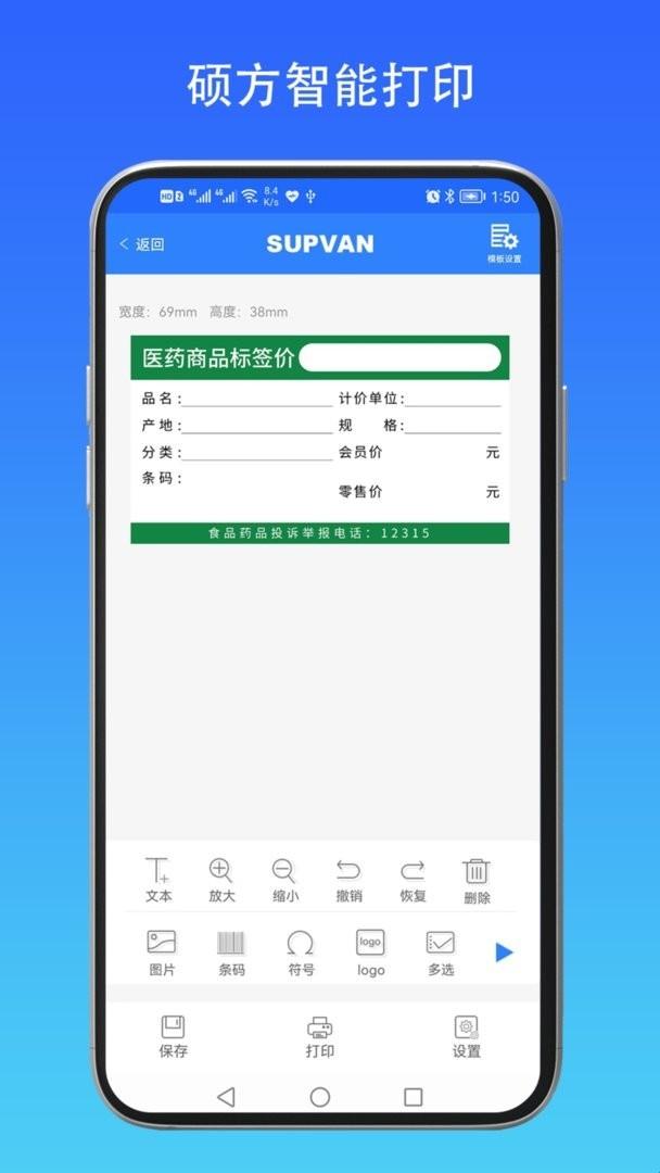 硕方打印是一款功能比较完善的智能打印软件,软件内置多种条形码二维码的设置和打印功能,方便分类和归置商品的区域范围,同时还支持多种软件的数据,批量导入和输出,方便快捷,有效提升工作效率。支持蓝牙、WiFi的连接诶,上传文件图片,还支持用户在app上面自主设置标识,用户上手较快。
