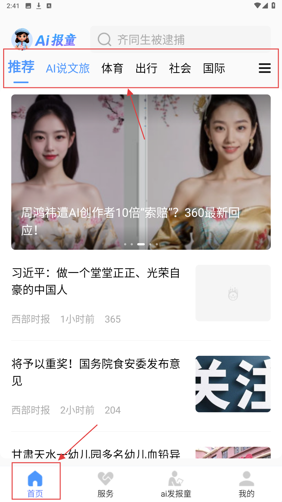 1、打开应用,在【首页】中可以查看推荐文章,点击感兴趣的文章进行查看。