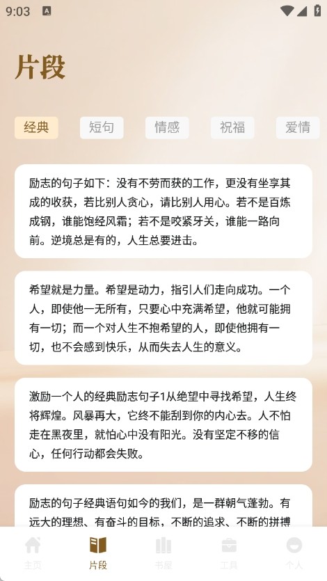 3、摘录功能:允许用户随时保存感人的文字,将情感瞬间变成永恒的收藏。