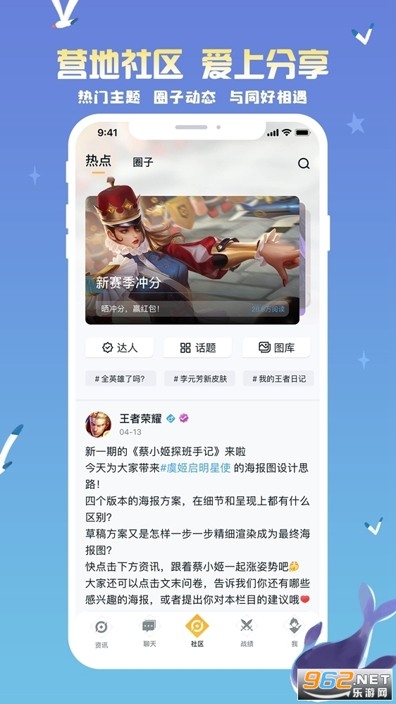我们还邀请了研发天团、主播高玩等入驻王者社区,可以通过热门推荐的动态与他们实时互动,了解游戏设计历程、主播高玩技巧!