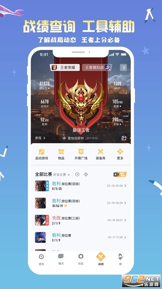 战绩查询、团队分析了解对局详情,游戏工具、助你一路上王者;