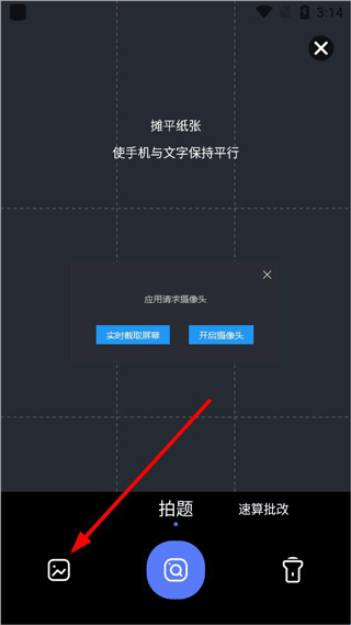 2、打开错题录入后,开启摄像头拍照,或者点击左下角打开相册;