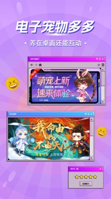 电子桌面宠物是一款可以进行手机桌面美化软件,集趣味性、互动性和个性化定制于一体,不管是主题,壁纸,还是电子宠物都有很多的选择,按照风格进行全面分类,得到的查找效率也会更高,各种宠物的形象是非常可爱的,按照稀有程度进行划分,对应的互动效果也会更有意思。