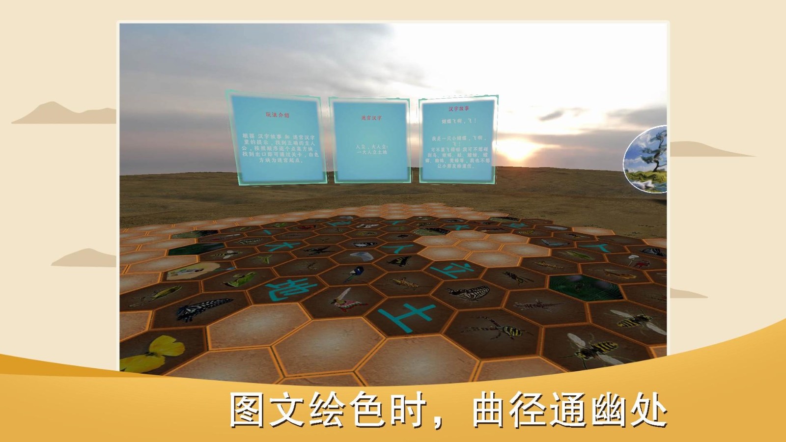 6、三维空间:汉字信息大厅、海岛、皇城、天文馆、艺术馆、居民区、原始村庄。