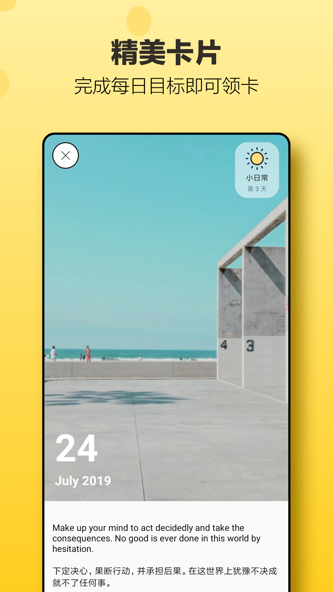 小日常是一款日常使用的打开管理工具,有写日记、待办事项、信赖喝水以及打坐冥想等日常打卡任务,支持自由管理自己的打卡任务;每天进入到应用主页就能看到今日的任务信息,按照自己的任务安排,一项一项的完成自己的任务,完成任务后即可轻轻点击任务的图标快速打卡;可以在习惯管理中心纵览自己的全部习惯列表信息,还能使用添加功能快速添加自己的新习惯,每一个习惯的标签上都记录着用户的打卡天数;所有的习惯都拥有自己专属的图标,还展示了不同的颜色,一眼就就清新的区分每一个不同的习惯内容。