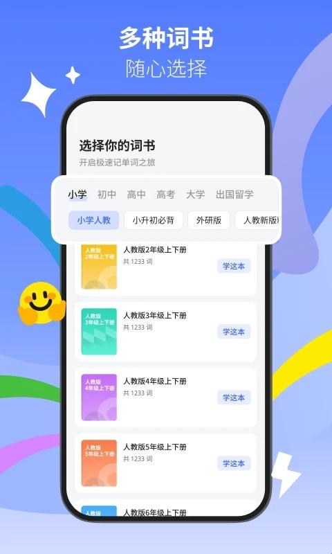 2、多种词书:平台为用户提供了多种词书,让你可以随心选择需要的词书。