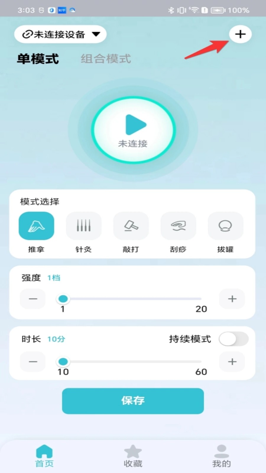 3、可以查看按摩仪的电量信息,根据不同的按摩部位可以选择不同的按摩方案。
