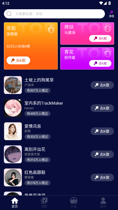 3、实时录音功能:让用户能够记录下自己的每一次演唱,随时回味。