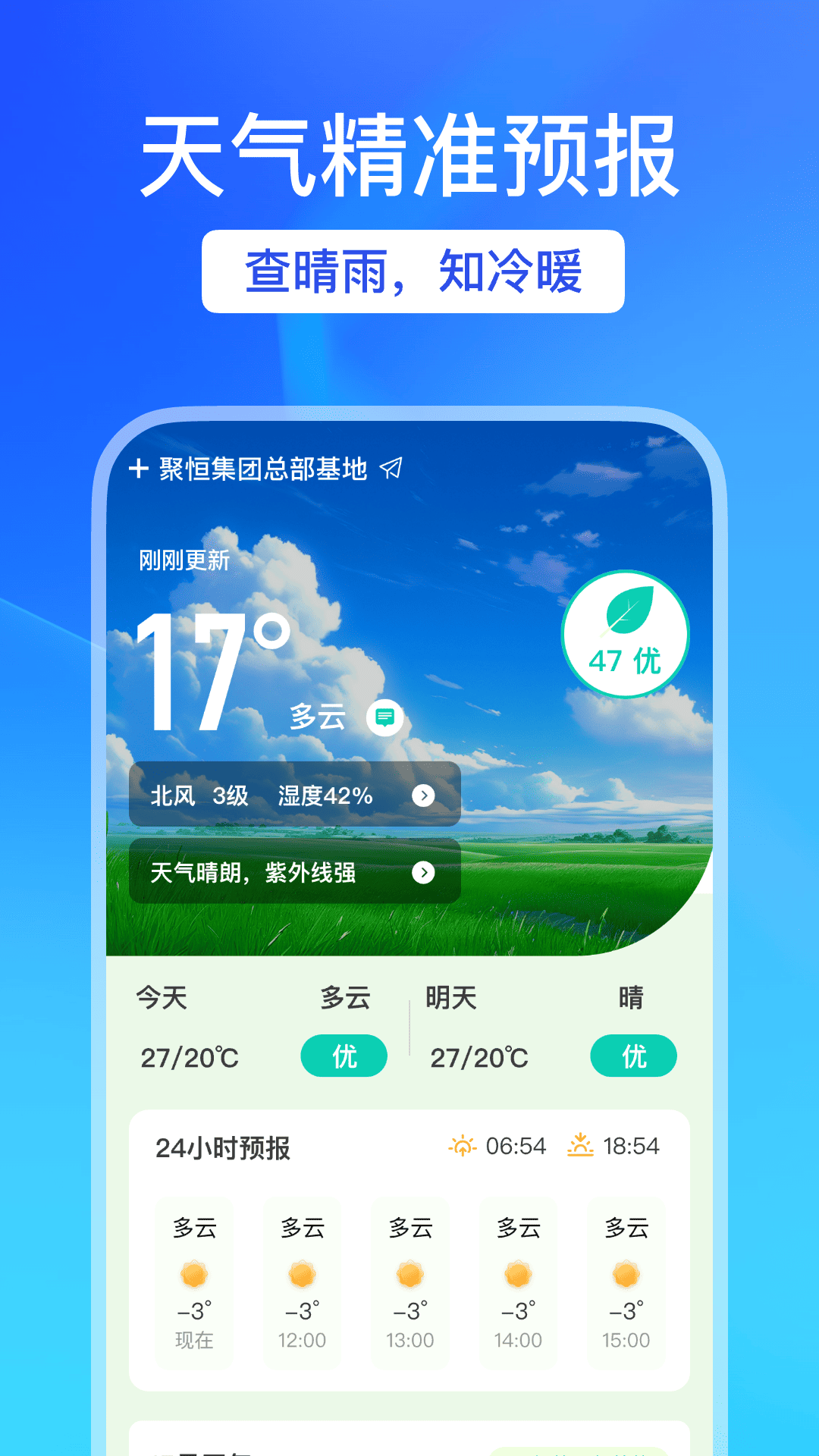 2、准确天气:非常精准的天气预报,告别传统看天气不准确的问题,了解天气信息更方便。