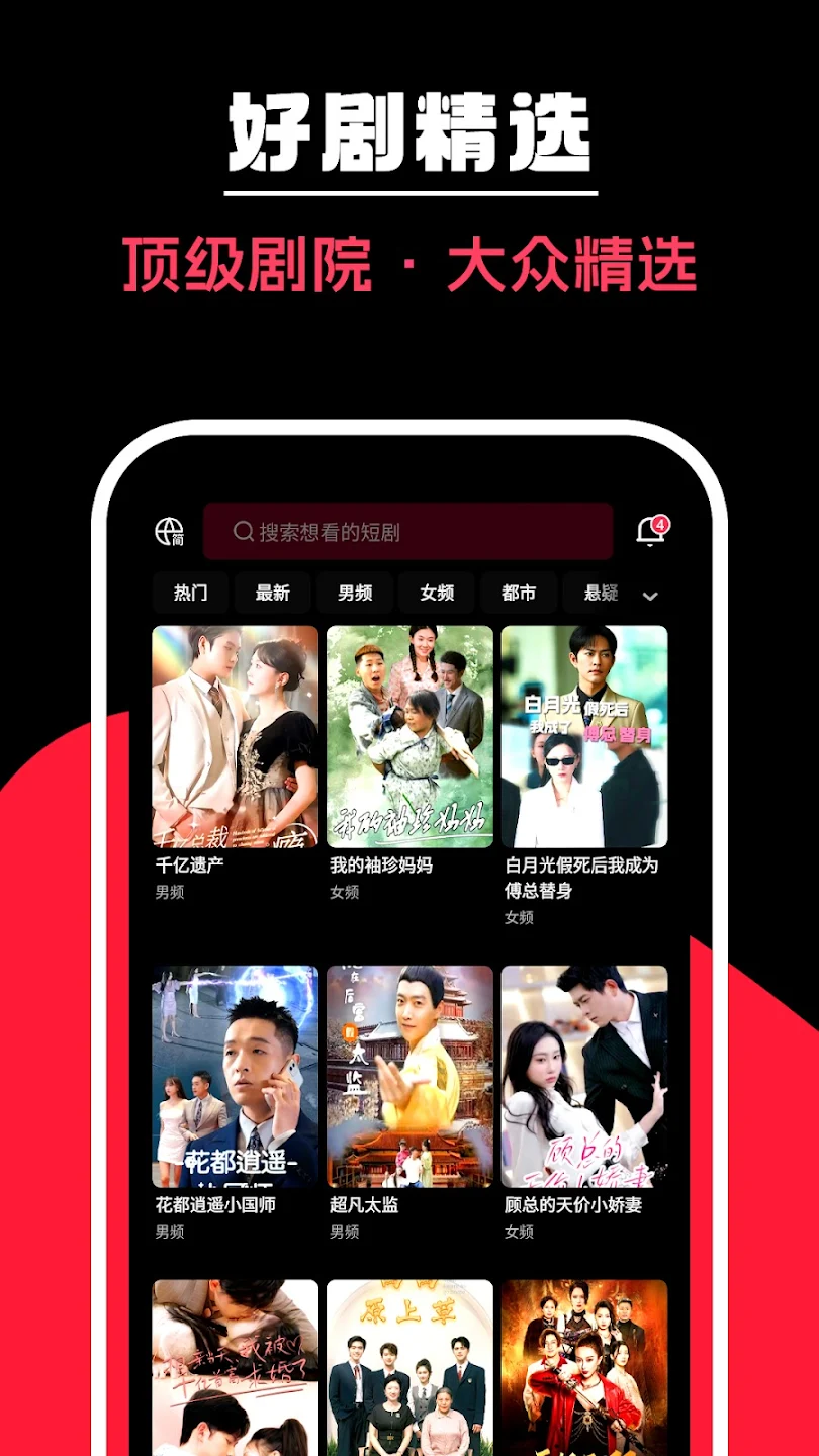 3、根据用户的观影历史和偏好,提供个性化的短剧推荐,让用户轻松发现符合自己口味的作品。