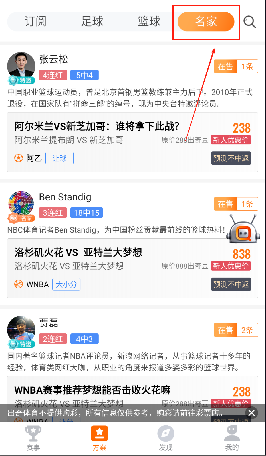 3、进入名家专栏选择特定联赛分析师,自定义接收频率后开启专属赛事解读的即时消息提醒功能。