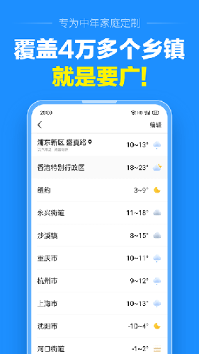 大字版天气预报app是专门提供给老年人或者眼神不是很好的用户使用的,大字体看起来更加的方便,页面简洁无广告,非常适合老人使用。