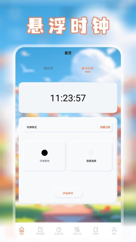 3、可以利用软件一键设置悬浮时钟,方便随时看时间;