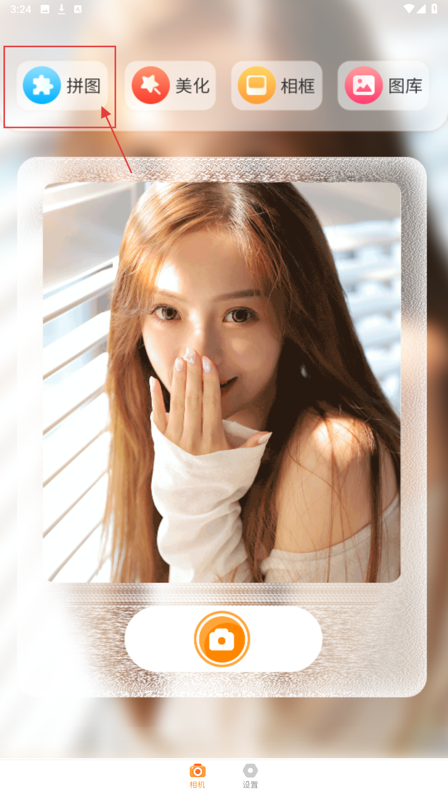 4、美颜参数可以自己调整,避免网红妆,还可以加边框,拼图。