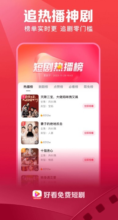 3、免费刷剧,短剧全免费:让您尽情享受短剧带来的欢乐,无需担心中途收费。