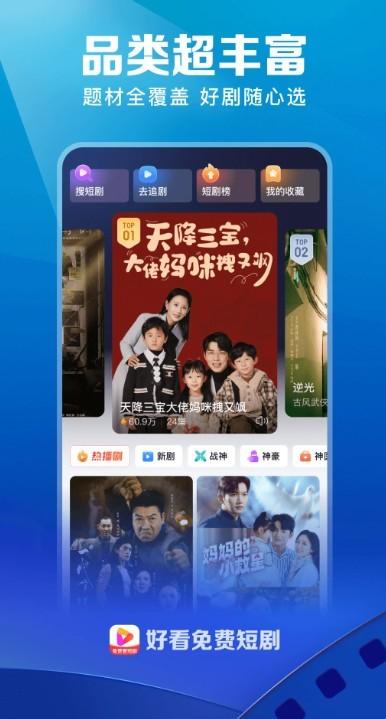 好看免费短剧是一款由百度网讯科技有限公司推出的实用的影视资源app,海量的精彩剧集抢先看,短剧全部免费,无需另外充值会员,短剧类型风格齐全,总有一款是你喜欢的。简洁的app界面,分类明确的热门剧集,让你轻松找到你想要看的影视资源,软件支持在短剧下面评论区里面讨论最新剧集的精彩之处。