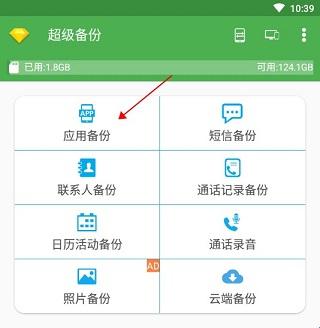1、暂时以备份手机软件为例子,在打开超级备份后,我们点击进入“应用备份”的页面里,这样就可以对手机应用进行备份了。
