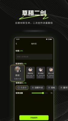 3、看到创作功能进入,选择一个自己喜欢的素材点击开始创作。