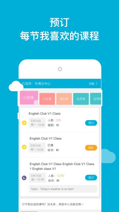 3、一键预约课程:几秒之内便能完成附近的WEBI中心预约。和WEBI一起,学习英语变得如此简单。