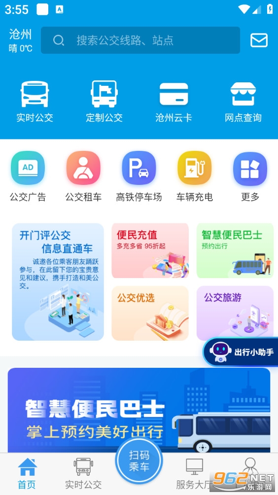 《沧州行2.0》是一款专为沧州市民打造的一站式公交乘车服务软件,软件界面简洁,功能丰富,包括实时公交、扫码乘车、网点查询、服务大厅等,全方位的为用户提供生活服务,让用户选择公交出行更加快速便捷,除此之外,软件内还支持线上充值、租车、充电等,满足用户的日常需求。