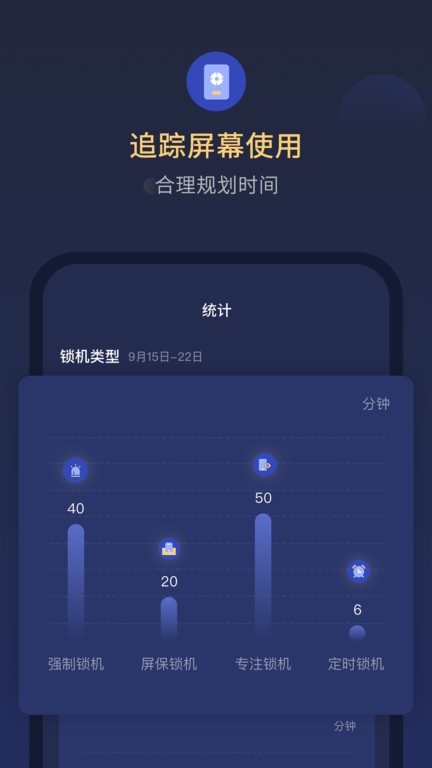 3、自动统计用户的屏幕使用时间,提供详细的统计数据,帮助用户了解自己的手机使用情况。