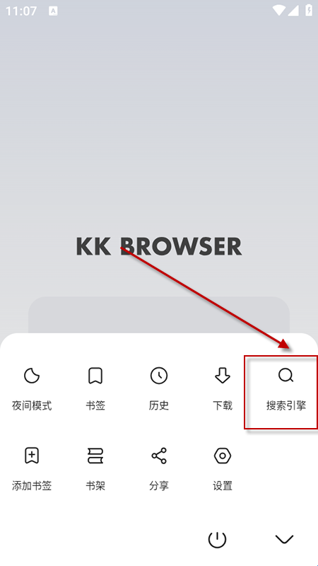 3、点击右下方的三个横杠图标,在弹出的菜单中点击“搜索引擎”,直接点击需要使用的搜索引擎即可完成切换。