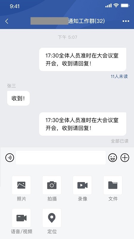 5、OA信息:支持图片、表情、文字的发送。收到固定群内好友的信息。
