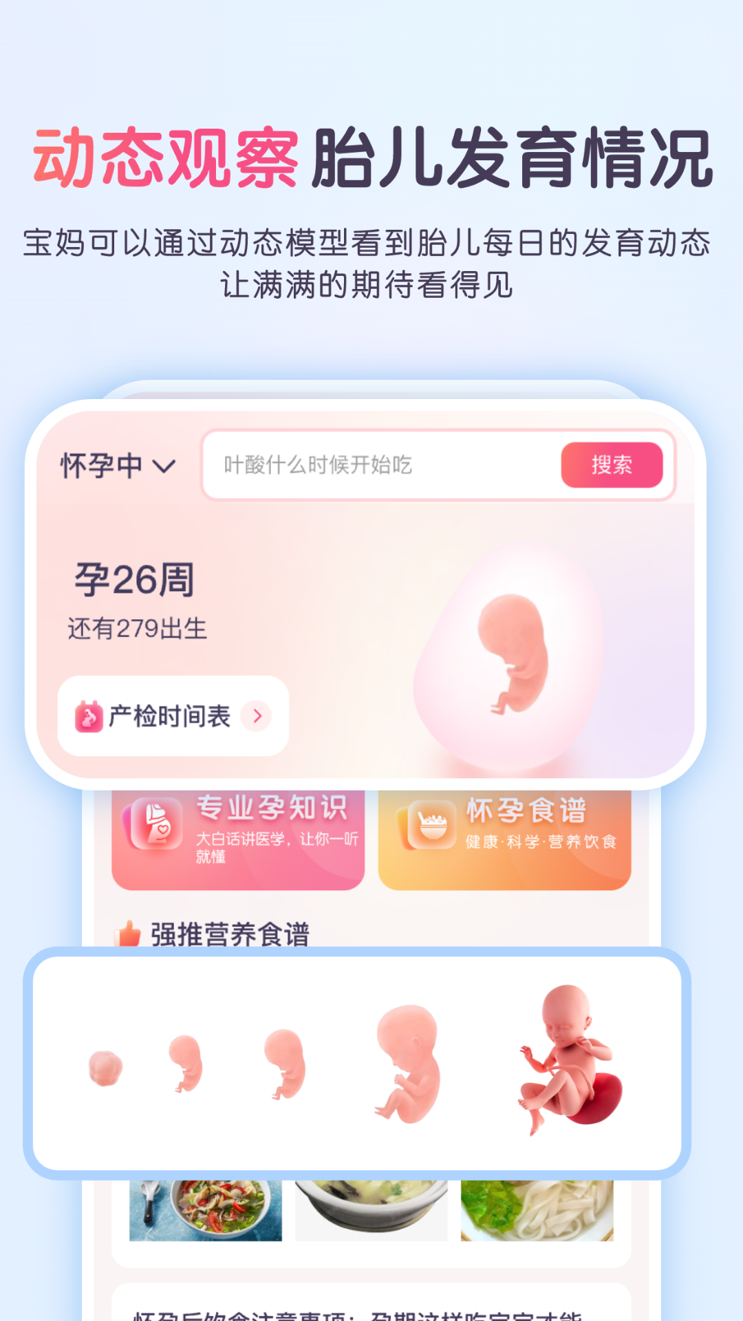3、宝宝食谱:还提供了非常全面的宝宝食谱,让准妈妈可以知道宝宝在不同时期的饮食。