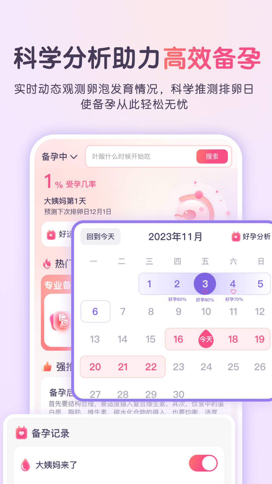1、科学备孕:帮助许多家庭实现科学备孕,能够有效的让备孕变得非常的简单,减轻备孕压力。