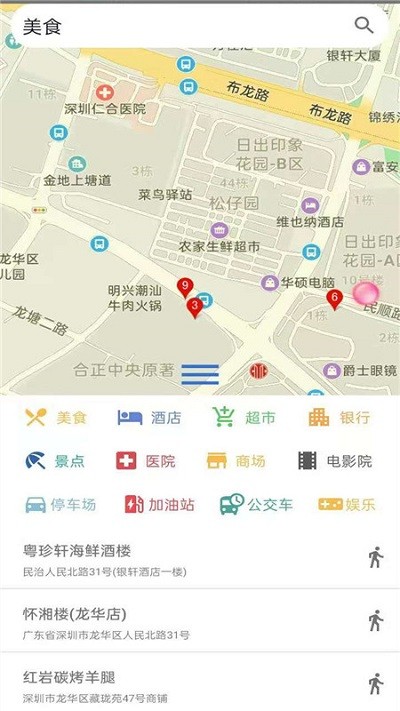 ·周边搜索:可以非常便捷的查询周边的生活娱乐等场所,支持地图快速检索,一键导航直达