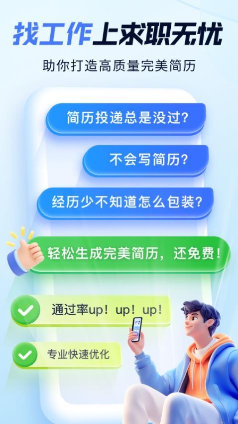 求职无忧:开启AI求职时代,让Offer主动来找你。在竞争激烈的职场中,一份出色的简历是您脱颖而出的关键。"求职无忧"是一款创新的AI求职应用,旨在通过AI技术帮助您打造高质量简历。