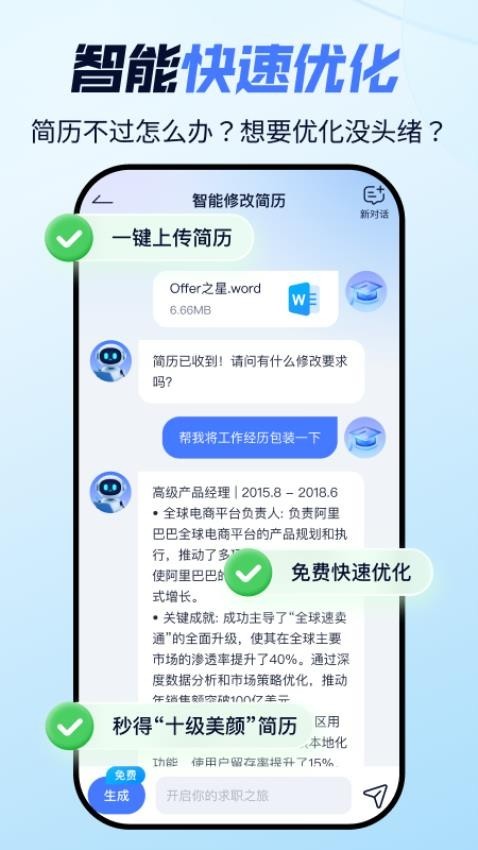 4、快速优化:这里还会对用户的简历进行快速优化,一键智能润色简历。